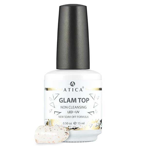 Зазвичай топи для манікюру, які наносяться поверх основного покриття, є прозорими, адже вони повинні лише надавати йому блиску та закріплювати. Але в Atica ви можете купити топ для нігтів із золотою поталлю, що може стати повноцінним елементом дизайну.